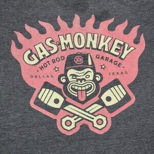 Gas Monkey SS Dark Grey Tee "Hot Rod Garage". No Size Tags. There is a light spot on the back of the left sleeve. See the LAST picture. Comes from a smoke free home.