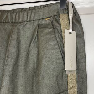 Pearl twill with metallic stripe pull on pants.