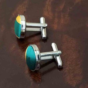 Gascoigne Cufflinks Zinc Metal Alloy with Silk Face Silver Green Yellow Men's