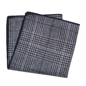 Gascoigne Pocket Square Wool Blend Gray Navy Glen Plaid Blue Men's