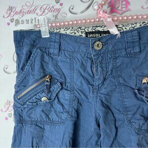 Gasoline cargo capri pants zippers zip up tie ups y2k pockets on back