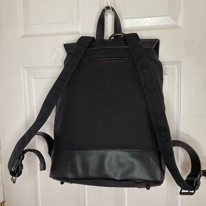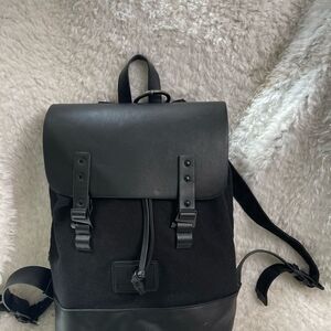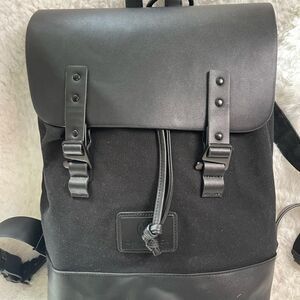 Gaston Luga Unisex Black canvas Laptop Large Backpack Water-Resistant string top closure and leather flop top closure with hooks closure.The inside lining has a padded compartment and two side pockets. Pre owned in good used condition small scratch on the leather and a small stain on the strap see all pictures any questions please message.M10