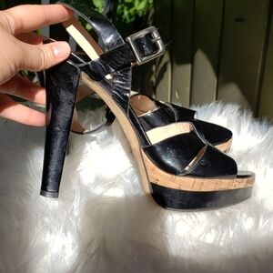 Platform Sandals with silver hardware at ankle. Stacked heels and buckle closure at ankles (6" heel with a 2" platform = 4" heel )Made in Italy EUR 40 (as marked)