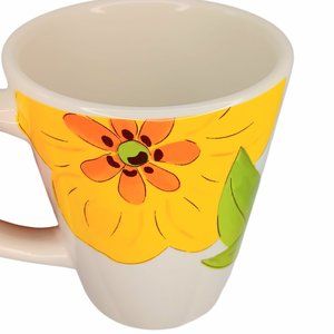 Gates Ware Laurie Gates Floral Mugs Yellow Blue Orange Hippie Boho