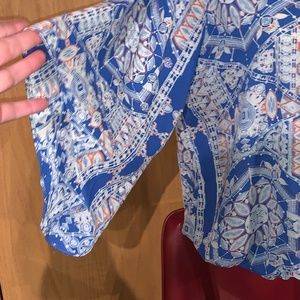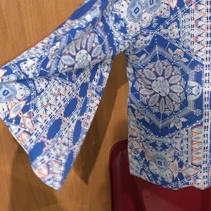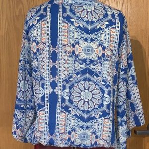 Gorgeous mosaic print Veronica M top. Worn only a few times. Gathered elastic waist that hits at natural waist. Always looks perfectly tucked! 3/4 length flowing arms. A very forgiving and flattering fit!