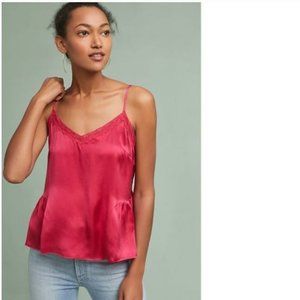 Gathering Silk Lace Cami by Floreat from Anthropologie Pink - Size Medium - NWT