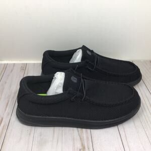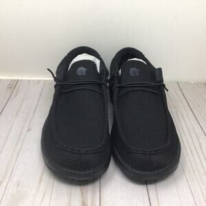 **Item Condition Notes:** Missing original box, otherwise new and unworn **Gator Waders Men's Camp Shoes - Size 11, Black** Lightweight slip-on outdoor loafers designed for comfort and durability. These camp shoes feature elastic no-tie laces for a customized fit without pressure points, making them perfect for quick on-and-off convenience. **Key Features:** - **Slip-on design** with elastic laces - no tying required - **Cushioned insole** for all-day comfort and reduced fatigue - **Breathable mesh uppers** with lightweight construction - **Durable materials** including rugged canvas and reinforced stitching - **Grippy rubber outsole** for superior traction and longevity - **Versatile use** - ideal for camping, trail walks, daily wear, or casual relaxation Built tougher than typical casual brands, these camp shoes are perfect for outdoor enthusiasts who need reliable footwear that transitions seamlessly from campsite to everyday activities. The breathable design and ultralight outsole provide comfort without bulk, making them excellent for summer wear, travel, or around-the-house comfort.