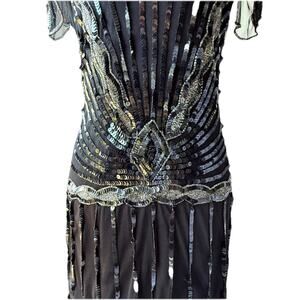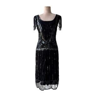 Gatsbylady London Black Beaded Sequin 1920s Flapper Dress Art Deco Formal Size 6