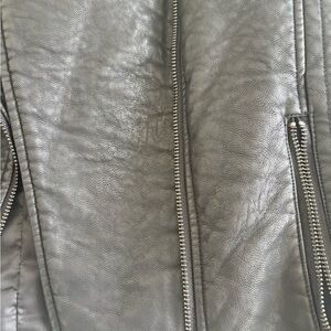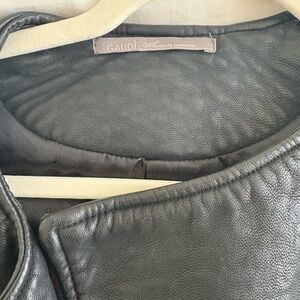 Chic black leather jacket with zipper details. Perfect for a modern look.