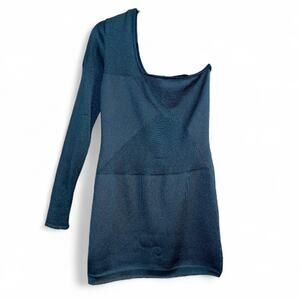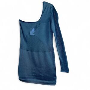 Gauge81 Black Mesh Sheer Cocktail One Shoulder Mini Dress size Medium