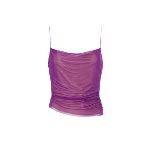 Gauge81 Lilburn Purple Draped Cowl Neck Sleeveless Mesh Camisole Tank Top S