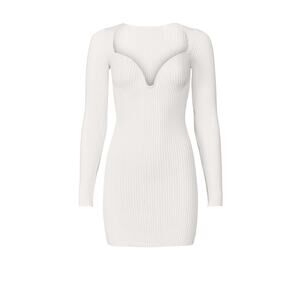 Gauge81 Mija White Ribbed Long Sleeve Wool Plunge Sweetheart Mini Dress Size XS