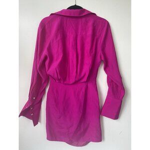 Gauge81 Naha Silk Mini Faux Wrap Dress Fuchsia Size XS Long Sleeve Plunge $525