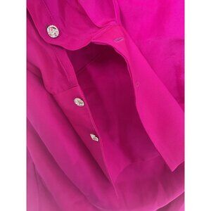 Description: Bold and luxurious “Naha” silk wrap mini dress in vibrant fuchsia by Gauge81. Features a plunging neckline, long sleeves with buttoned cuffs, and a faux-wrap skirt for a flattering fit.