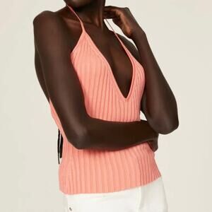 Gauge81 Women's Moura Plunge Ribbed Halter Top Large Orange
