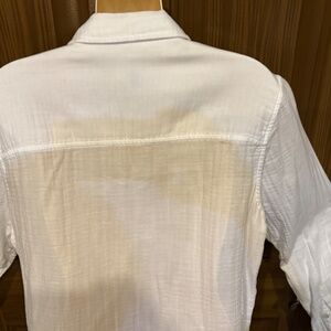 This Women's Gauze Long Sleeve Collared Button-Down Shirt by Universal Thread in white is a stylish and versatile addition to any woman's wardrobe. Made from 100% cotton, this shirt is lightweight and breathable, making it perfect for the summer, fall, and spring seasons. The relaxed fit and tunic style offer comfort and a flattering silhouette. The solid pattern, long sleeves, collared neckline, and button closure add a touch of classic sophistication, while the casual sleeve detail gives it a relaxed and effortless vibe. Easy to care for with machine washable fabric, this shirt is perfect for casual occasions with a timeless university theme.