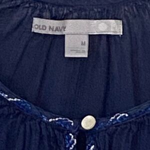 Festival Season Find ! Vintage Y2K Boho Peasant Top Navy Blue Size Medium Gauze Untuck Top w Embroidery