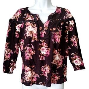 Gauze Top Women's L 3/4 Sleeve Pinks Black Embroider Career Packable Cottage