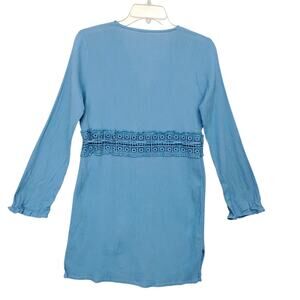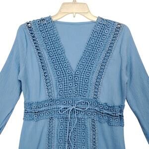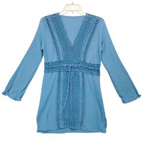 Gauze Tunic Top Size XS Blue Long Sleeve Pullover Waist Drawstring V Neck