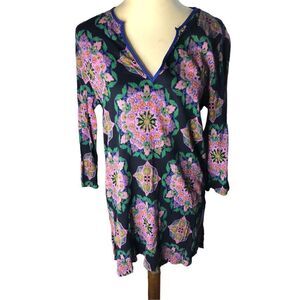 Gauzy J Crew Pink Medallion V Neck 3/4 Sleeve Gauze Cotton Tunic Swimsuit Cover