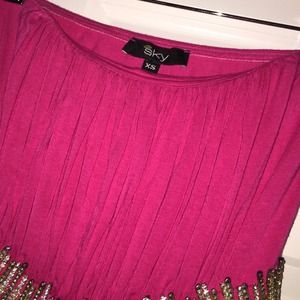 Gorgeous Sky Top , Pink with bling Crystal Stones. Size XS. Worn 2x . Very Sexy Top , Metal embellishment, with crystal stones. Looks amazing with jeans , leggings , shorts or a skirt! :)
