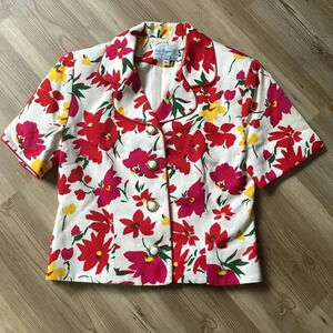 Gay Boyer floral print skirt suit VTG Lined Size 10 Spring Cotton Vibrant Classy