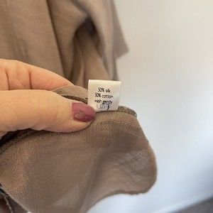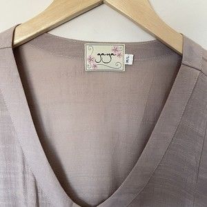 Gaya Silk Cotton Beige Button Down 3/4 Sleeve Tunic Top M/L. Measures 24 inches across chest and 31 inches long