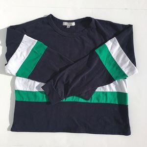 Gaze Color Block Rugby Stripe Cropped Long Sleeve Top M
