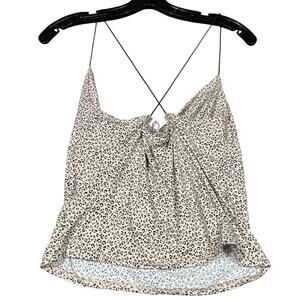 Brand new with tags Gaze DTLA leopard print cami in a neutral beige with allover black animal spots. Features a draped cowl neckline and thin criss-cross adjustable spaghetti straps at the back. Lightweight and stretchy with a soft feel—perfect for layering or a night out. Fabric is 96% polyester and 4% spandex.