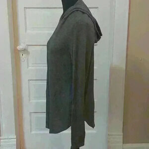 Super soft fabric. Pullover hoody with a curved hem. Measures flat pit to pit 18"