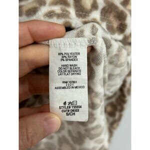 Gaze Leopard Print Crewneck Long Sleeve Crop Top Tan White Sz Small Animal Print