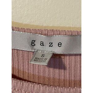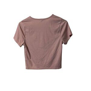 Gaze Size Small Womens Powder Pink Short Sleeve Crop Top with Striped Pattern #Q