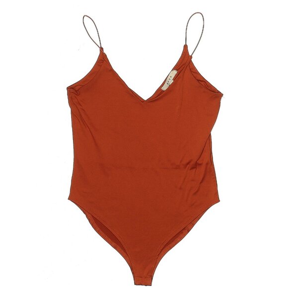 Gaze Spaghetti Strap Sleeveless Rust Orange Plunging V-Neck Bodysuit sz S