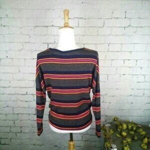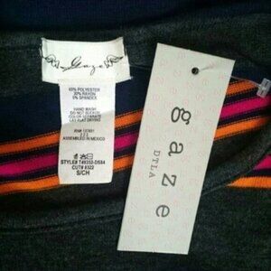 Gaze Striped Tie Front Long Sleeve Top Gray Size Small