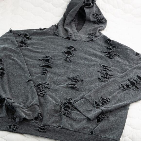 Gaze USA Hoodie Women's M Gray Sweater Top Comfy & Distressed 90s Hip Hop Style