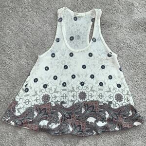 EUC - GAZE USA mixed pattern of floral shapes and paisley. Racerback tank top containing stretch, boho style. Size small