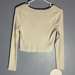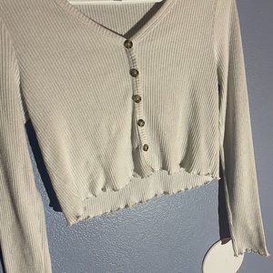 Gaze White Ribbed Long Sleeve Crop Top - MEDIUM