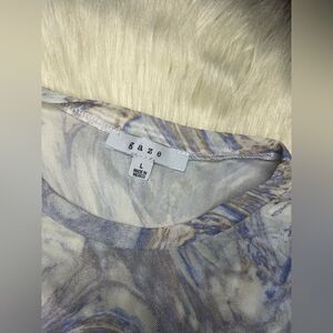 Gaze blue/pink print sheer longsleeved bodysuit sz large