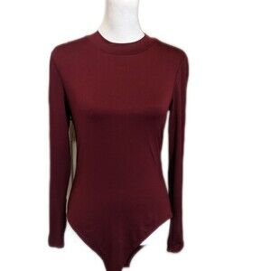 Gaze mock turtleneck burgundy maroon long sleeve bodysuit, M