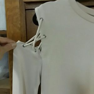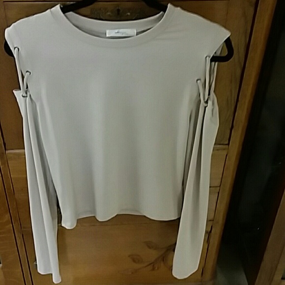 Gaze top. Worn once. Excellent condition. Nude color. Cold shoulder with criss cross design at shoulders. Such a cute top!