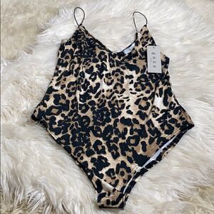 Gaze Bodysuit Womans  Sz M leopard print Y2K Mob Wife 90’s spaghetti straps New