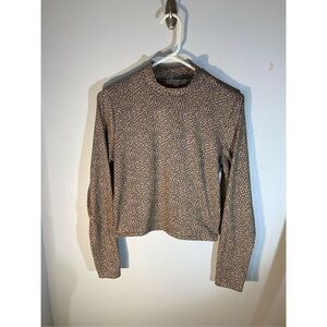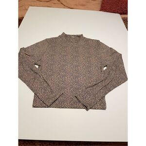 GAZE mock turtleneck longsleeve cropped. Leopard print. Lightweight. Perfect layering piece. Conforms to body. EUC- no rips, tears or stains. 96% poly 4% spandex. Flat lay 20”L, 16” P-P. #layeringpiece #pastelgoth #lagenlook