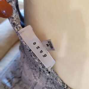 Gaze. Gray snd White Snake Reptile Print, Snap closure, stretchy straps, Super Soft Bodysuit. Size Medium