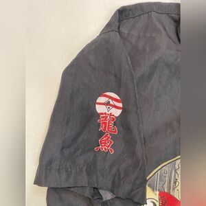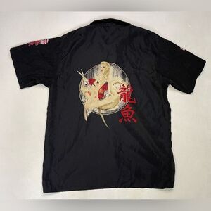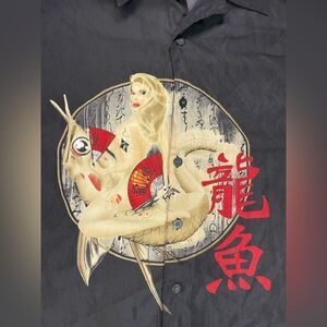 Gazoz Chinese Fish Pin Up Girl Button Up Shirt Men Large Black Short Sleeve
