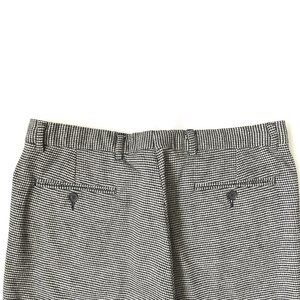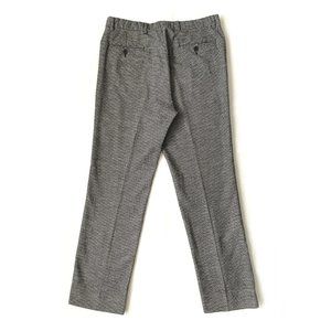 Men's pants, elegant. Lining on front, and only down-to-knee. Waist size 32 inches, length 40". Have pockets on front & back. Fabric doesn't stretchy. Polyester/viscose blend. Closes on zipper & button. Color is: black-white mix, looks kinda gray.