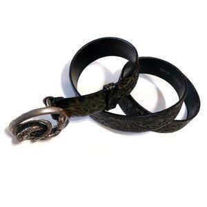 One (1) Gazzarrini Snake Buckle Green Black Embossed Leather S 50/90 Belt