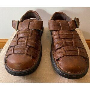 Gbx Brown Leather Closed-Toe Chunky Sandals Adjustable Strap Cushioned Soles 7M