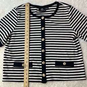 G by Giuliana Striped Short Sleeve Cardigan Top with Gold Buttons Women’s Sz L