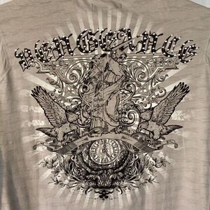 G by Guess Men's Skull Graphic Studded Pocket Henley T-Shirt Men’s XL Long Sleev