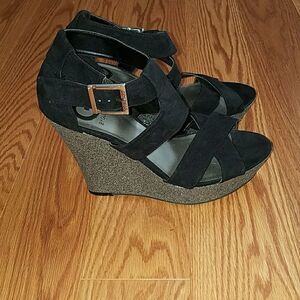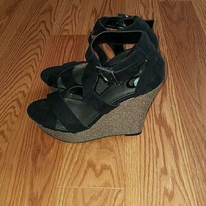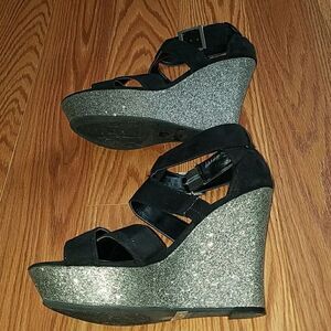 G by Guess black and silver glitter wedges Sz 8